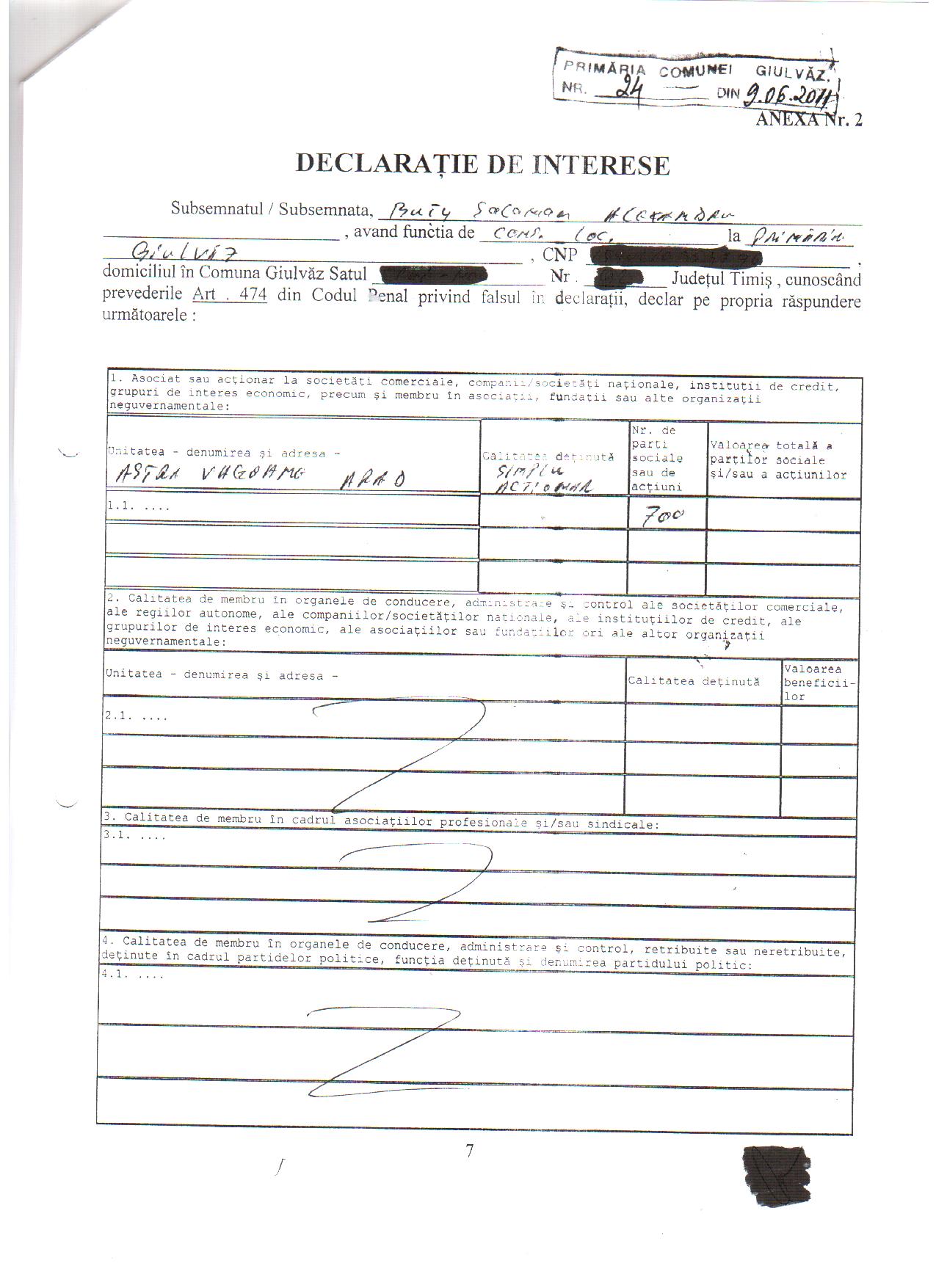 Declaratii de interese