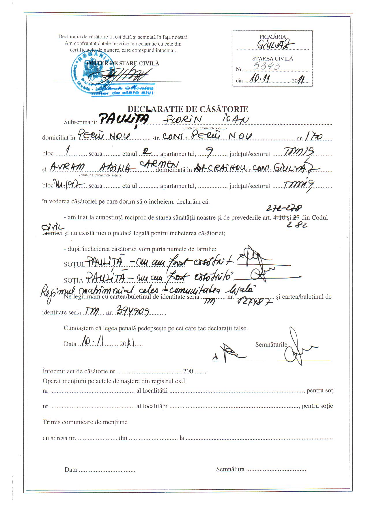 | Stancu Florentin Buliga Felicia |