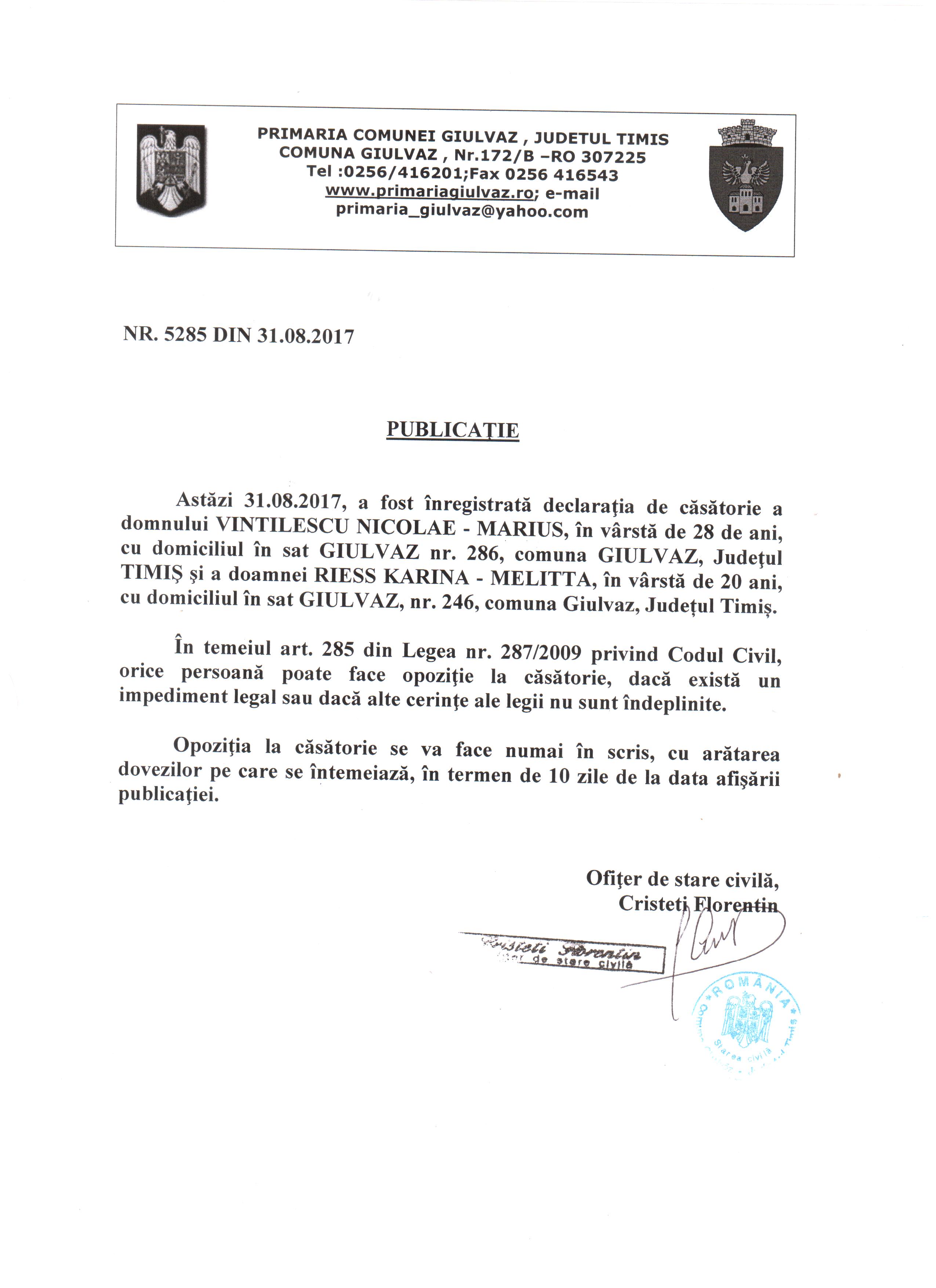 | Vintilescu Nicolae - Marius Riess Karina - Melitta |
