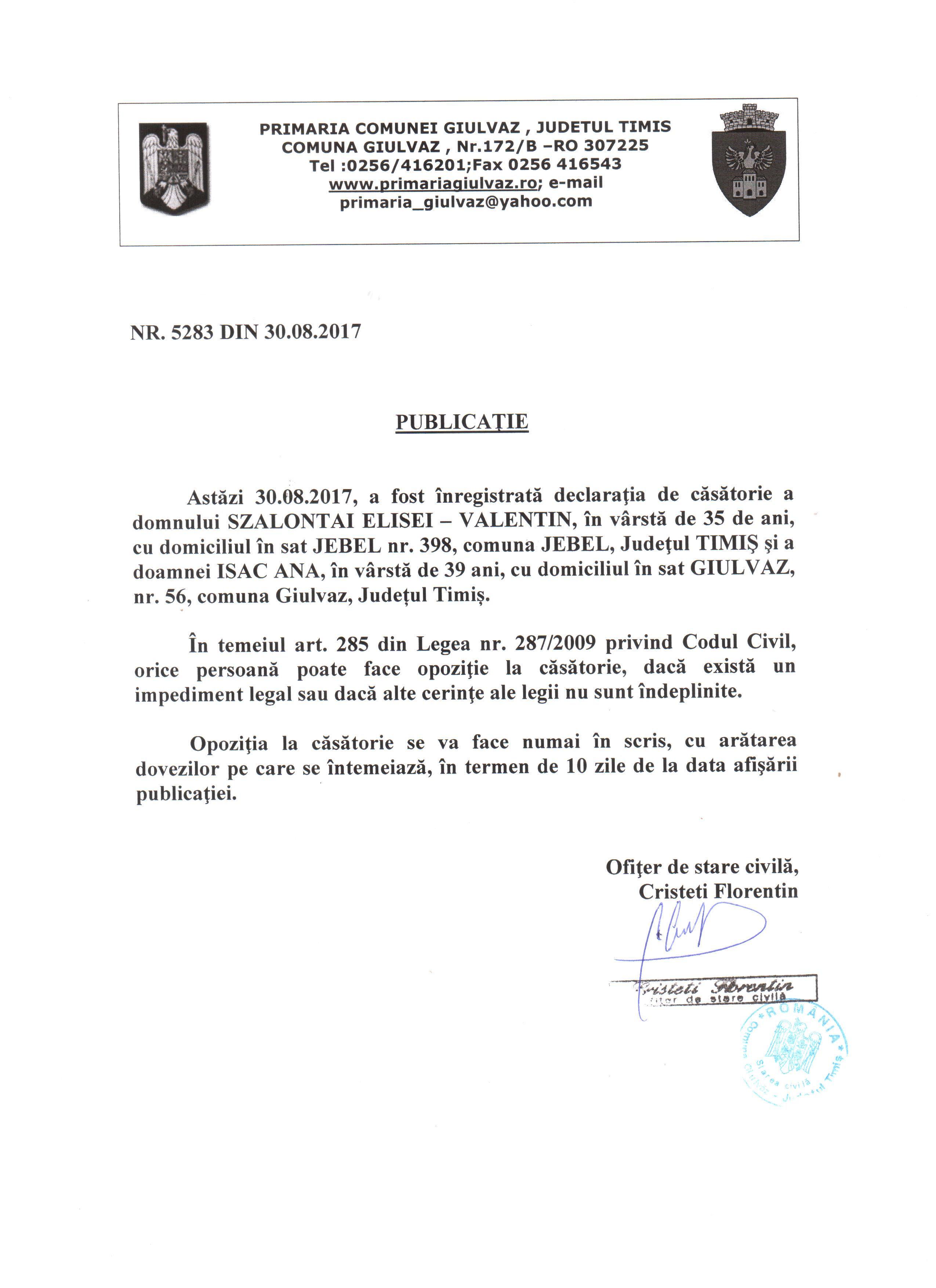 | Szalontai Elisei - Valentin Isac Ana |