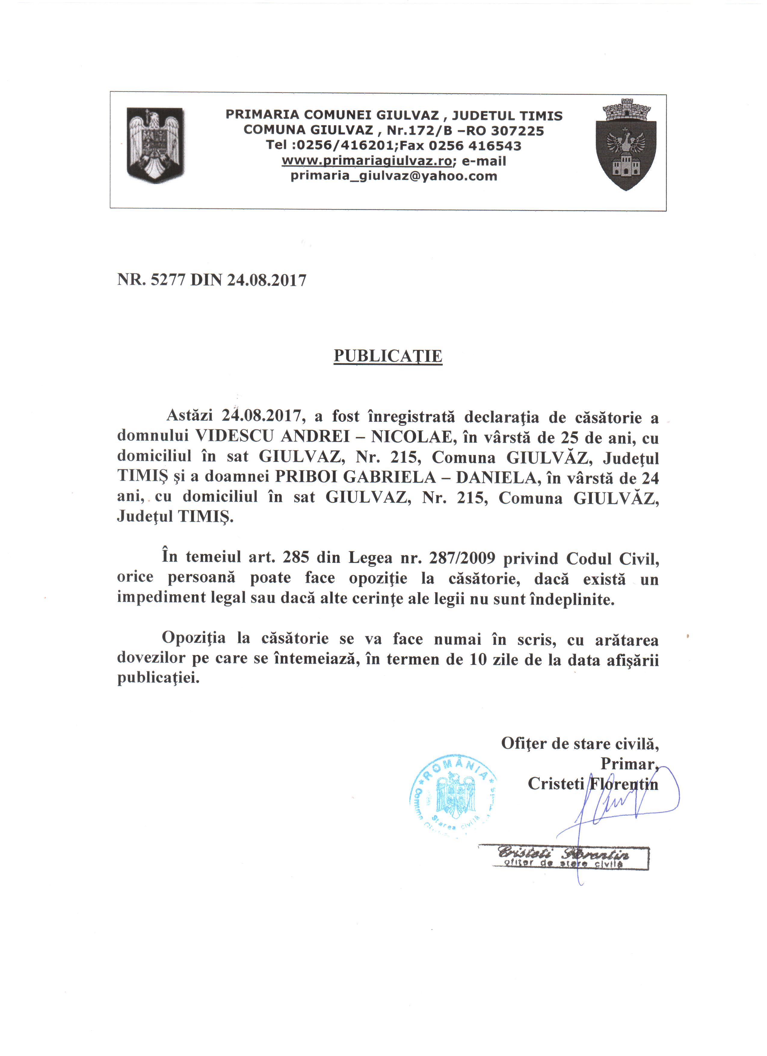 | Videscu Andrei - Nicolae Priboi Gabriela - Daniela |