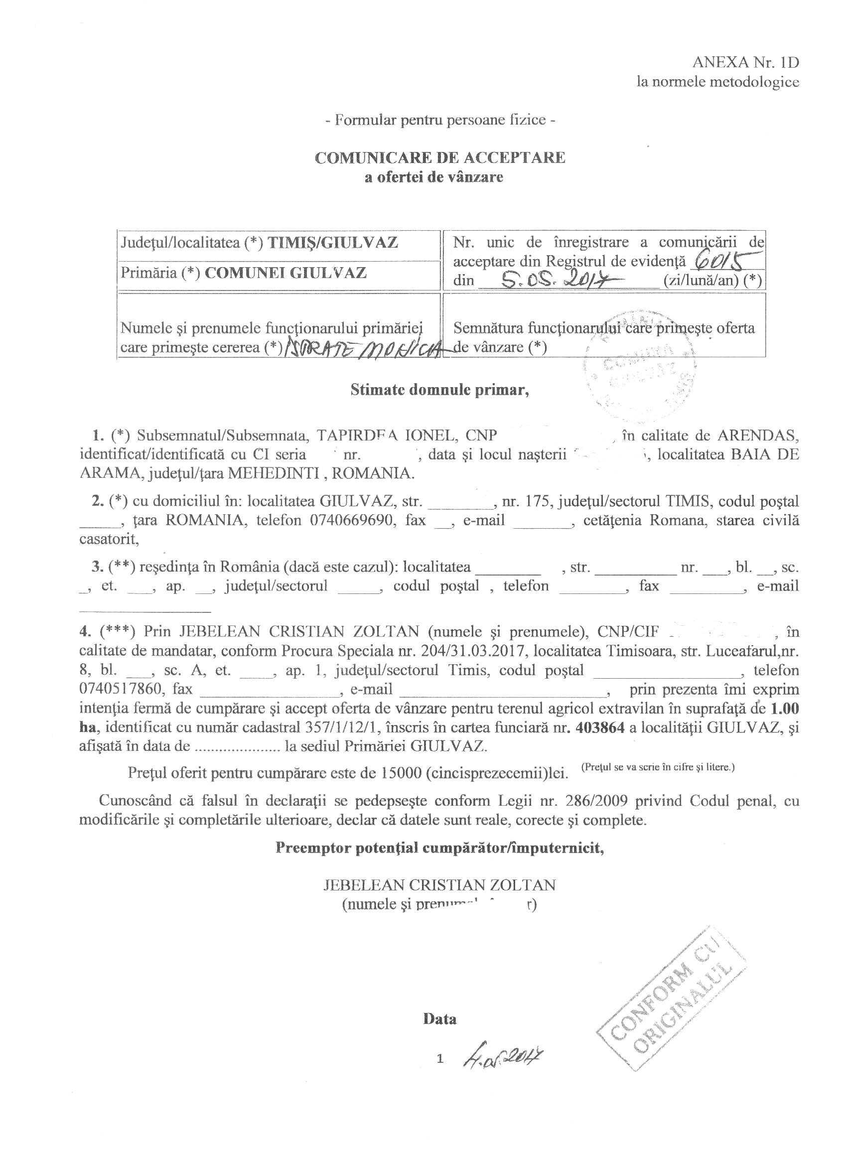 Comunicare de acceptare o ofertei 1,00 ha. CF 403864jpeg.jpeg