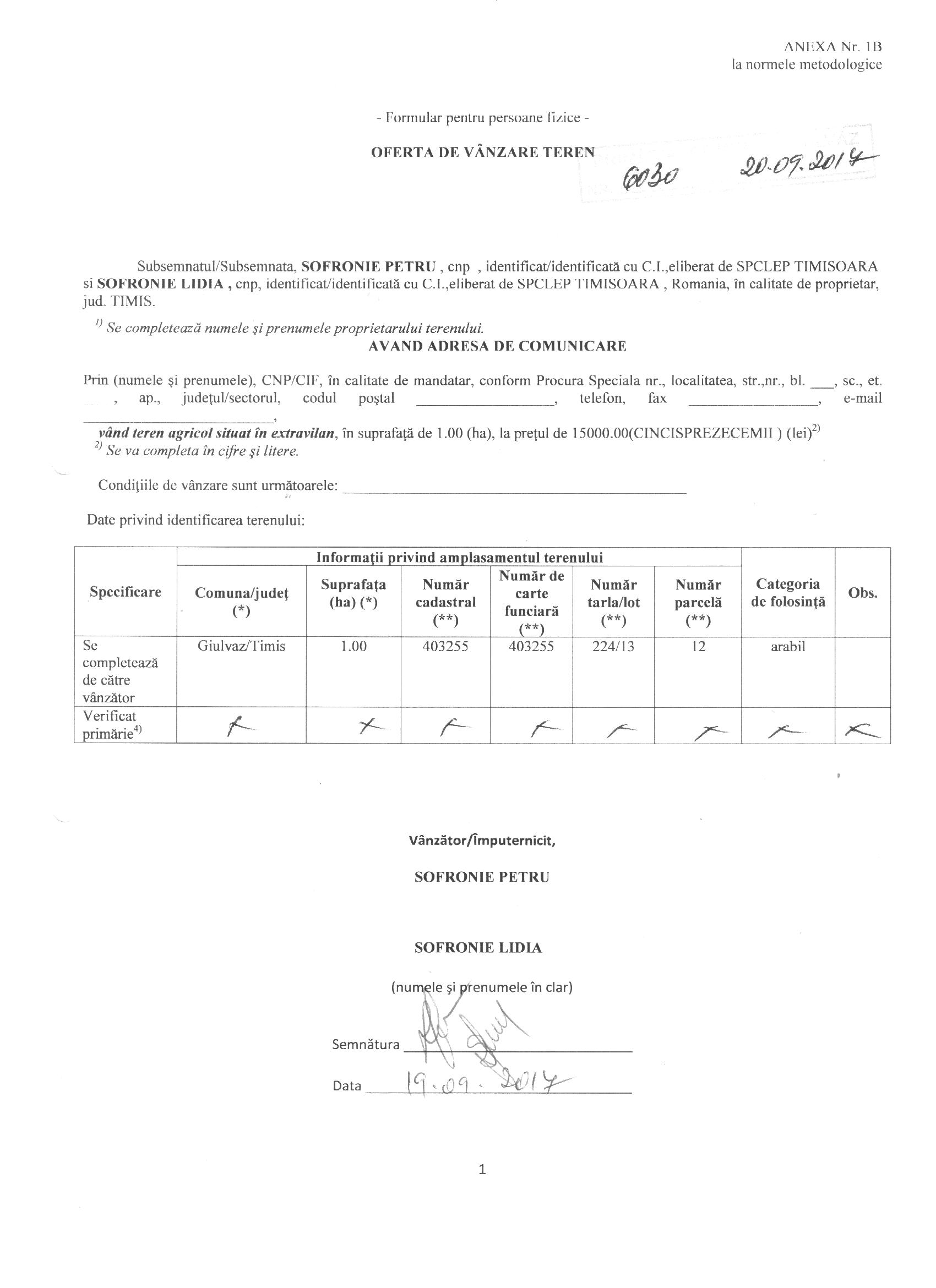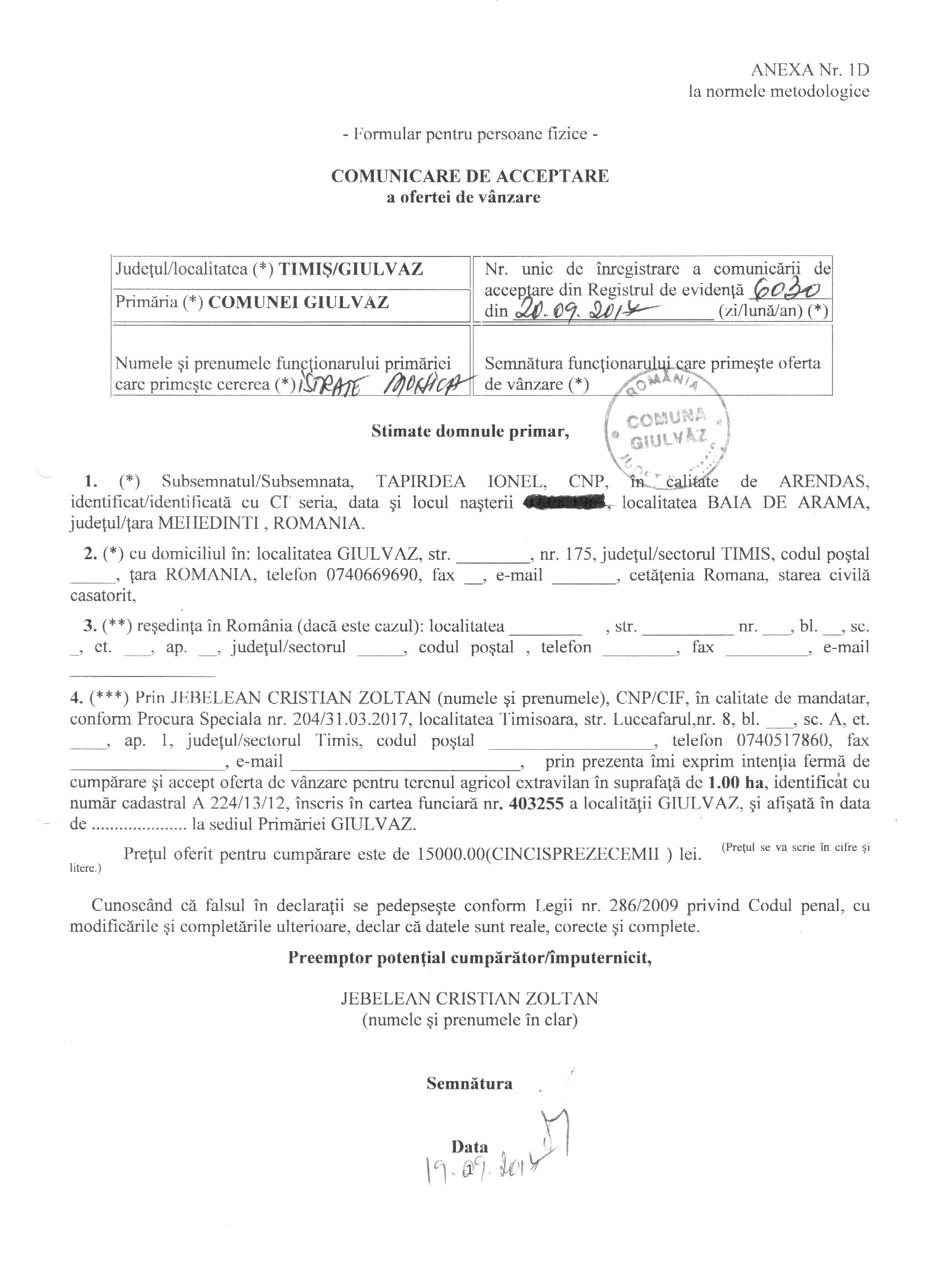 Comunicare de acceptare a ofertei de vanzare depusa de Sofronie Petru si Lidia 1.00 ha CF 403225.jpeg