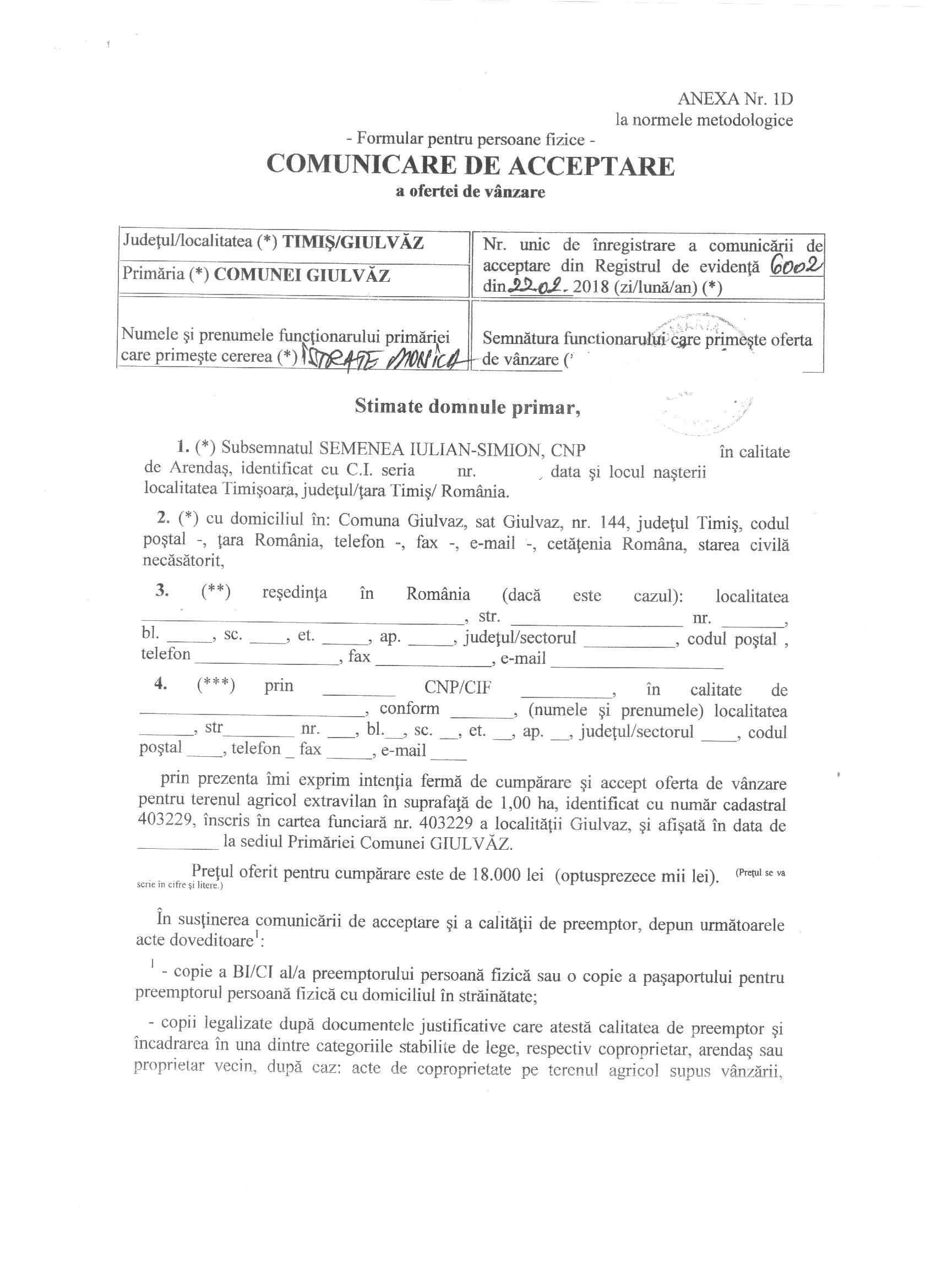 Comunicare de acceptare a ofertei de vanzare depusa de Stoian Eftimie 1,00 ha pag.1.jpeg